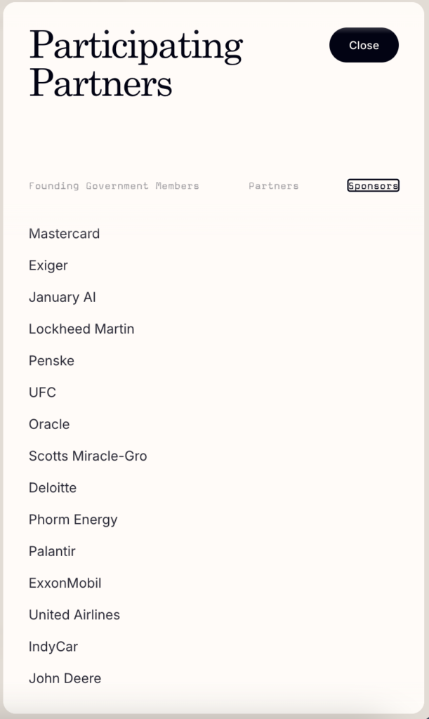 Corporate sponsors of Freedom 250 include Mastercard (batting leadoff on the sponsors lineup today), consulting giant Deloitte, Scotts Miracle-Gro, and United Airlines, among 15 companies listed on their site.